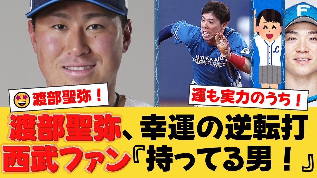 渡辺幸運の逆転だ。西武ファン持ってる男。 西武は日本ハム線の5 回渡辺夜のタイムリーをきっかけに逆転に成功した。 2点ビハインドの5 回コのフォアボール、西川のヒットその先のフォアボールで満塁のチャンスを作った渡辺也は山崎也の初球をセンターへ打ち返しタイムリーヒットを放った。 磯端の早急がカメラ満席へ入りボールデッドとなり皇高速 2 勝者も訪務員した。審判団の競技により渡辺は 3 塁への侵類が認められ、水部は思わぬ形で逆転に成功した。 渡辺也アの打球も強かったが、やはりそば両太の早ミスが大きい、あれがなければ 1点で終わっていた可能性も ですね。3 塁への早急判断自体は悪くないけど焦りが出たかな。 磯バは足しあるけど肩はそこまでじゃないし。 ちなハムやけどバタは前から早急課題って言われてる。驚きはない。 難しいことは分からんけどに点が入って最高。せいや本当に持ってるキーでここまでやってくれるとは。 本当に打席での期待感がすごいですよね。見てて楽しい。 浮かれてる場合か。他の先輩方が情けないんだよ。新人に頼りっぱなしでどうする?はいはい。 どうせまた明日からつもの打線でしょう。 初回に3 ン打たれた時点で今日は終わったと思ったよ。まさかこんな形で勝つとはね。分かる?昔のライオンズならここから猛反撃だったが、今はこういうラッキーがないと勝てんのかね。 この先のフォアボールが決勝点につがったのは皮肉だな。まあ何もせずに失塁するのが 1番の好点かもしれん。 結果的にあのアボールは大きかった。山崎也のあのコースを見切ったのは評価すべき。 よっしゃ、何でもいい。勝ちは勝ちだ。 高橋コーナも3 失展したけど、その後よく粘ってくれたね。勝ちがついてよかった。 ちなハムですが、渡辺せ夜君良い選手ですね。お手上げです。セブさんおめでとうございます。ありがとうございます。そちらのレース選手のホームランすごかったです。 しかしタイムリーヒット 1本で3 点か。自力で打ちった感じがしないのが少し複雑だな。 運の実力のうちこういう勝ちた最高に重い。 持ってるルーキーはチームを救うのだ。このチャンネルではプロ野球の反応をまとめてます。 チャンネル登録よろしくお願いします。なのだ。