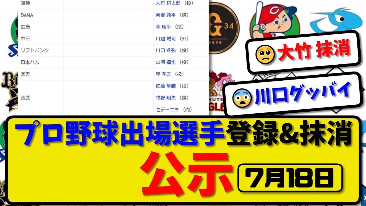 【公示】プロ野球 出場選手登録&抹消 公示7月18日発表|大竹&東妻&森&川越&川口&山崎&岸&佐藤&牧野&セデーニョら抹消|【最新・まとめ・反応集・なんJ・2ch】