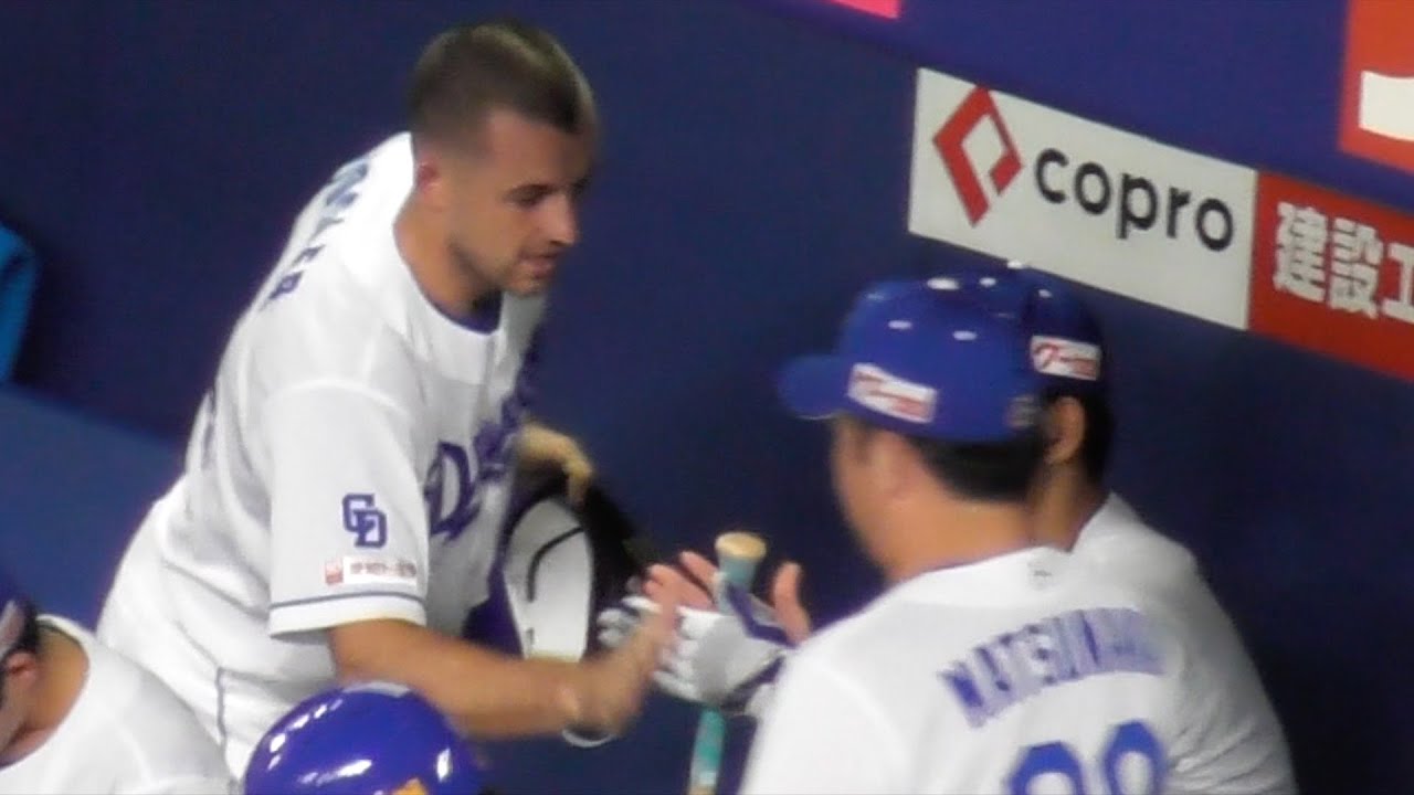 ボスラー 逆転タイムリーの瞬間のドラゴンズベンチ ベンチに帰って笑顔でハイタッチ 中日ドラゴンズVS横浜DeNAベイスターズ 2025/07/19