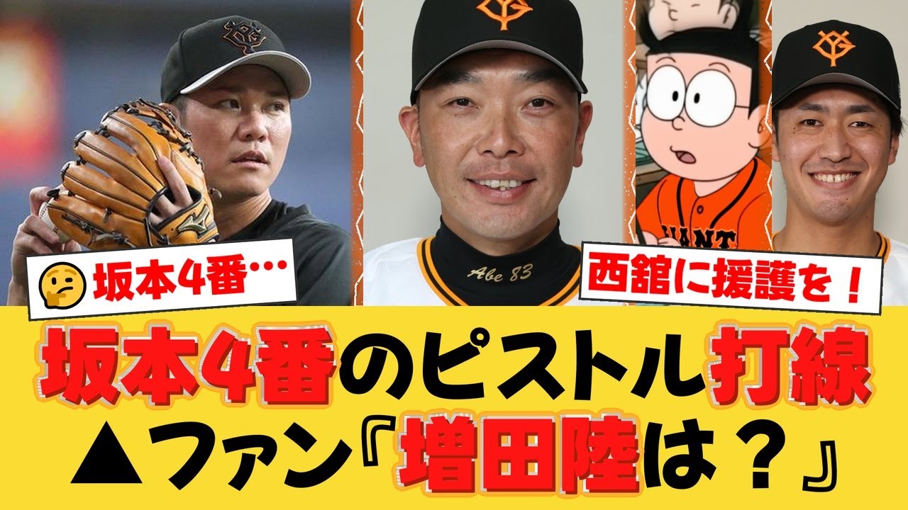 【巨人】坂本4番固定にファンから「増田陸を使え」の大合唱。阿部監督の采配に疑問の声が噴出するスタメン発表、その意図とは?【巨人ファンの反応】【G速報】