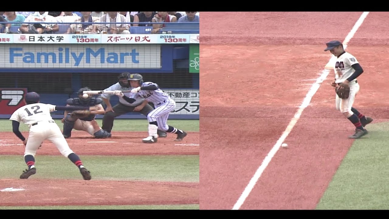 ベースに当たるセーフティーバント 巨人 戸田懐生 投手 高校時代 東海大菅生 徳島インディゴソックス 読売ジャイアンツ プロ野球独立リーグ内野安打