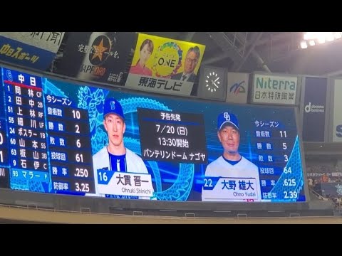 20250719 大野と大貫!明日翌日・予告先発投手の発表【中日ドラゴンズvs横浜DeNAベイスターズ】6回表終了後@バンテリンドーム ナゴヤ・レフト外野 ナゴヤドーム