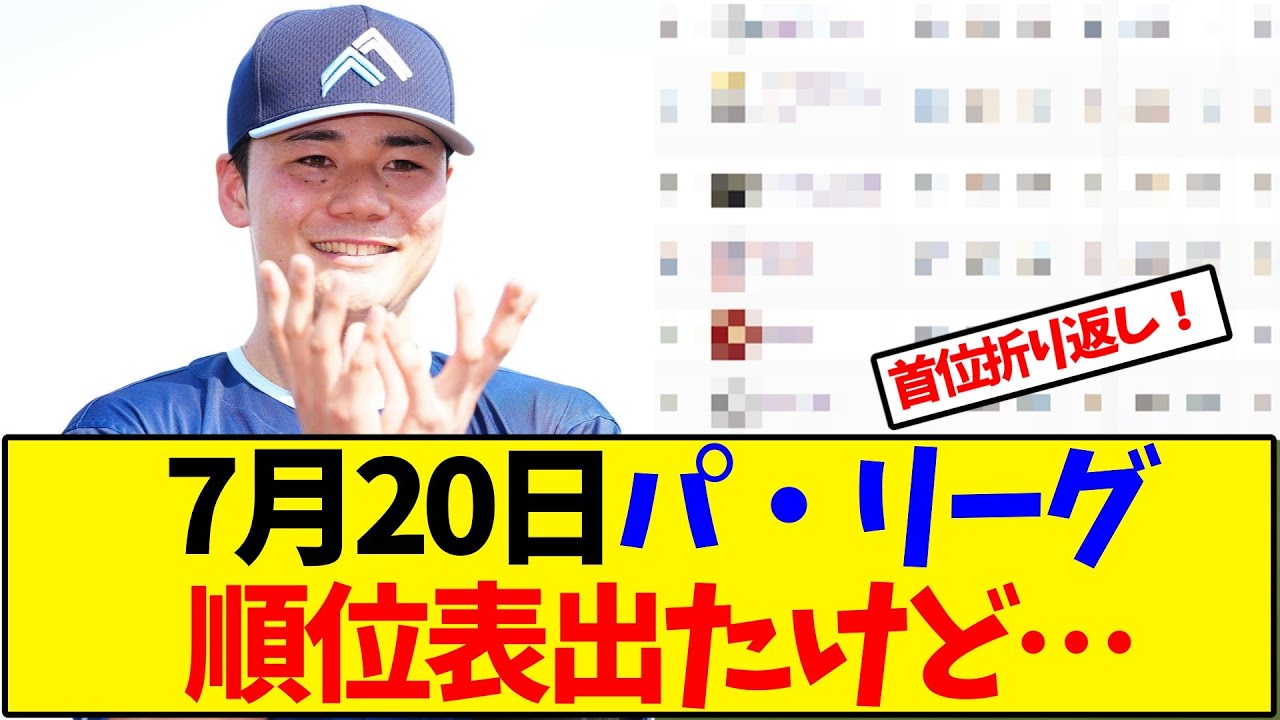 【最新版】7月20日パ・リーグ順位表出たけど…【野球反応集】