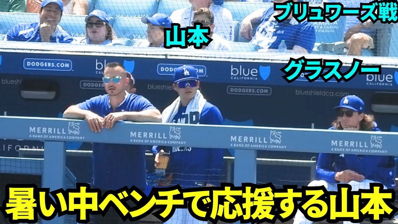 暑い中ベンチで応援する山本由伸!キムヘソンが代走に出たので1人で応援【現地映像】2025年7月21日 ブリュワーズ戦