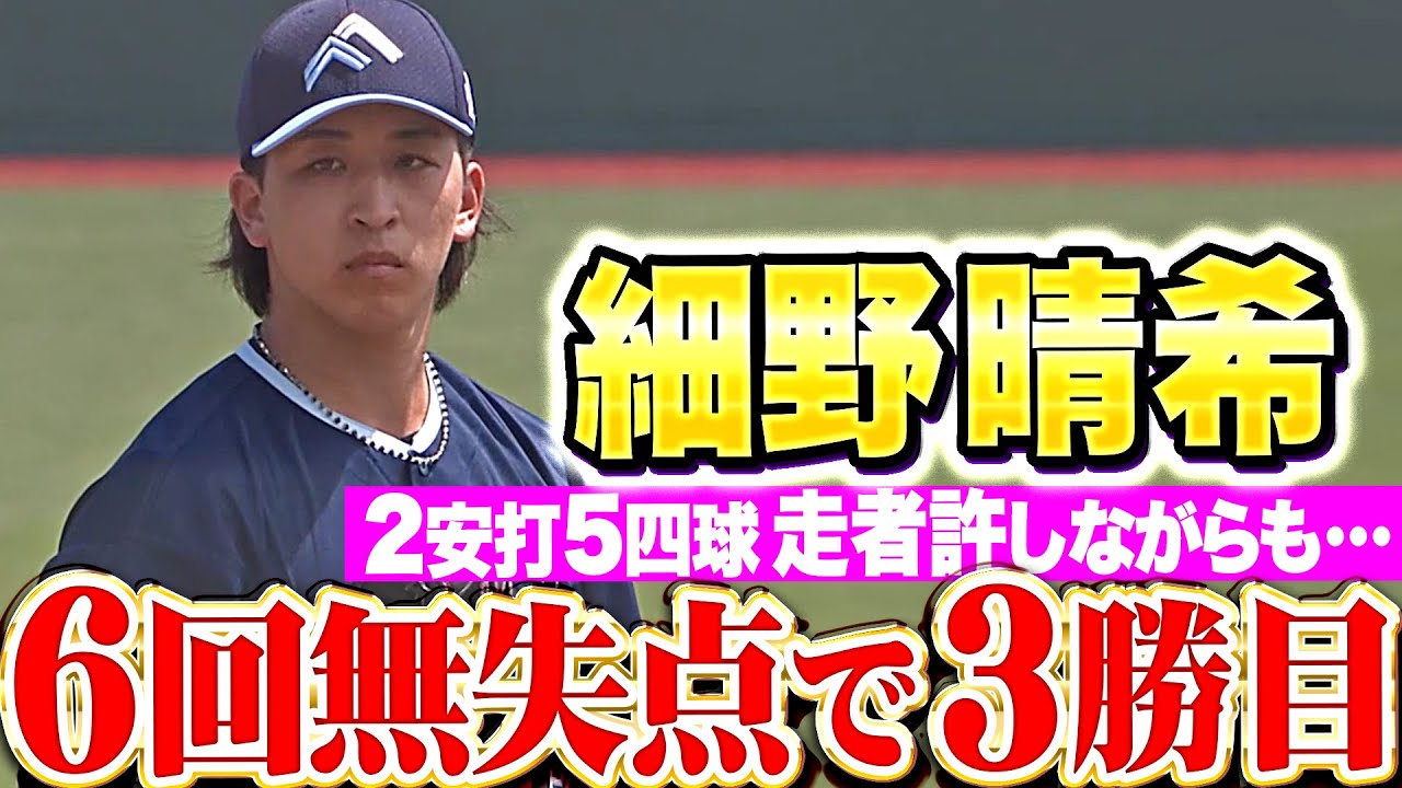 【2安打5四球】細野晴希『走者許しながらも要所で素晴らしいボール…6回無失点で今季3勝目!』