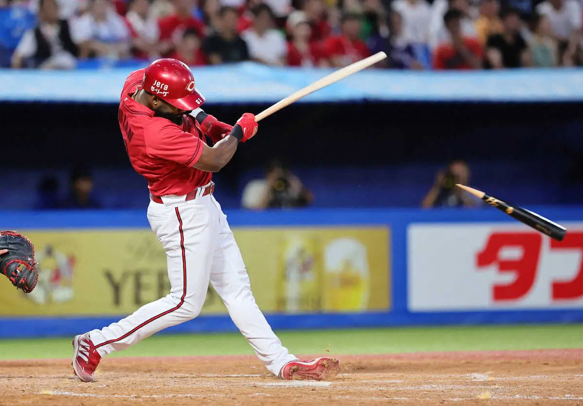 まずは初回だ。2死二塁に左翼線二塁打の小園を置き、鮮やかな先制打。フルカウントからヤクルトのランバートのチェンジアップを振り抜くと、ライナーは左前で弾んだ。10日の阪神戦で4打席目に右前打を放って以来、実に9試合33打席ぶりの安打だった。