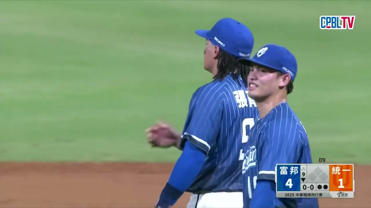 07/17 富邦 VS 統一 九局下,張奕上場關門用8顆球送出三上三下,守下勝利