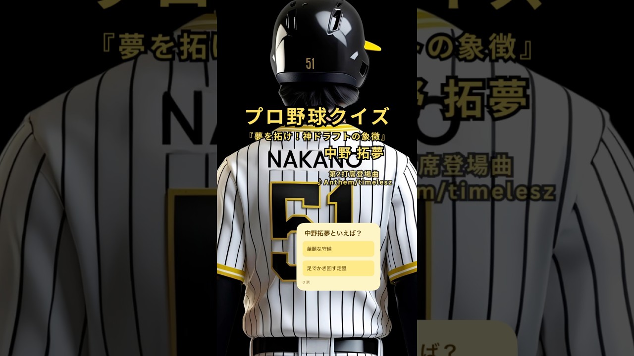 【プロ野球クイズ】中野拓夢クイズ-プロ1年目で盗塁王!?神ドラフトの象徴!#中野拓夢 #阪神タイガース #プロ野球クイズ #盗塁王 #神ドラフト #野球ファン #鳥谷敬 #ギネス記録 #プロ野球
