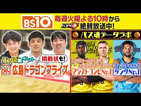バス魂データラボでは、アシストコンビランキングとダンクランキングを紹介!またバス魂コネクトでは広島ドラゴンフライズ・完結編!さらに中村選手からの挑戦状もあります