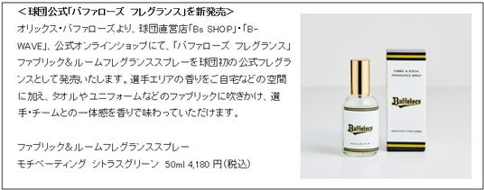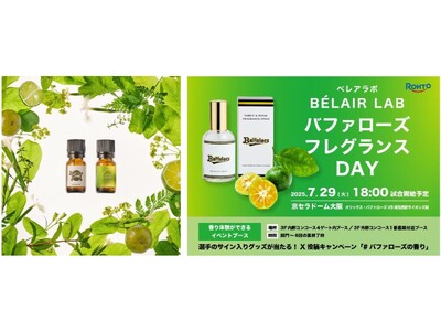 ロート製薬株式会社(本社:大阪市、社長:瀬木英俊)が運営をする「BELAIR LAB(ベレアラボ)」は、プロ野球球団オリックス・バファローズ(本社:大阪市)と共同開発し、京セラドーム大阪の選手・チーム関係者エリアで使用中のオリジナルフレグランス「MOTIVATING CITRUS GREEN(モチベーティング シトラスグリーン)」シリーズを、2025 年 7 月22 日(火)よりベレアラボ公式ストア・楽天にて先行発売、7 月 29 日(火)よりベレアラボ公式ストア・楽天・Amazon、および、オリックス・バファローズ球団直営店・公式オンラインストアにて発売いたします。また、発売記念として、京セラドーム大阪にて開催されるオリックス・バファローズ VS 埼玉西武ライオンズ戦を「バファローズ フレグランス DAY」として冠協賛を行い、香り体験イベントやプレゼントキャンペーンを行います。