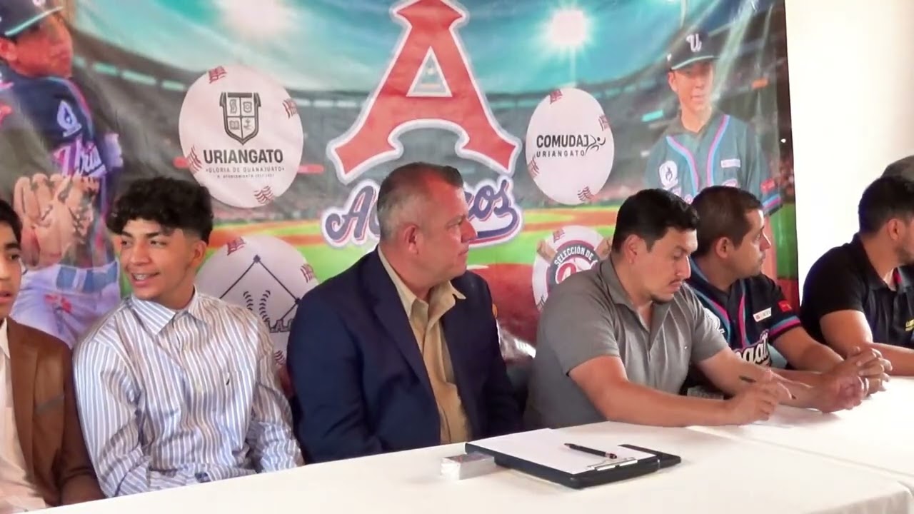 Acompáñom si hay lugar para Hay otra silla. para usted. Es para usted. Acá es el lugar. por atrás también. Muy buenas tardes a todos los presentes. Les damos la más cordial bienvenida a esta rueda de prensa organizada por la Comisión Municipal del Deporte y Atención a la juventud de Uriangato, Comudag, con motivo de la firma de contratos de nuestros jóvenes deportistas con el club Aceros de Monclova. Agradecemos la presencia de las autoridades, medios de comunicación, invitados especiales, familiares y amigos que hoy nos acompañan en este momento tan importante para el deporte uiangatense. A continuación me permito presentar a los invitados de honor que nos acompañan en la mesa principal. Nos acompaña el licenciado Ricardo Alberto Guzmán Méndez, director de Comudat Uriangato. Nos acompaña el profesor Marco Antonio Escarga, promotor deportivo de Comudac y entrenador de la Academia de Béisbol, Ernesto Escárrega Acosta AC. Nos acompaña Marco Antonio Álvarez, presidente de la Liga de Béisbol Uriangatense. Nos acompaña también el señor Arturo Torres, representante de la Liga de Béisbol Uriangatense. Nos acompaña Derek Oliver Escárga Vieira, beisbolista destacado de Comudac. Gato y deportista de la Academia de Béisbol, Ernesto Escarrega Acosta AC. También nos acompaña Dusti Escárraga Martínez, beisbolista destacado de Comudá, Urian Gato y deportista de la Academia de Béisbol, Ernesto Escárrega Acosta AC. Nos acompaña el señor Sergio Atquel, scout de Club de Acereros de Monclova. Nos acompaña también el ciudadano Ramiro Díaz Martínez, regidor de la Comisión de Deportes. Nos acompaña el ciudadano regidor Ubertino Samudio Martínez, regidor de la Comisión del Deporte. Nos acompañan también mamás de los deportistas. Eh, bienvenidas. Sean todos bienvenidos. Para dar inicio formal a este evento, cedemos nos falta también eh mencionar pues el más importante, nuestro presidente Juan Carlos Martínez Calderón, presidente municipal del municipio de Sean todos bienvenidos. Para dar inicio formal a este evento, cedemos el uso de la voz al licenciado Ricardo Alberto Guzmán Méndez. director de Comudac, Urianato, quien nos dirigirá unas palabras de bienvenida. Muy buenas tardes a todos. Es un verdadero honor para mí como director de la Comunidad Municipal del Deporte de Urangato, como Comisión Municipal del Deporte de Uriangato, eh darles la más cordial bienvenida a esta rueda de prensa tan significativa para el deporte de nuestro municipio. Quiero aprovechar este espacio para agradecer de manera muy especial a los distinguidos miembros del presidium que hoy nos acompañan. En primer lugar a Sergio Adwell, scout de los aceros de Monclova, por confiar en nuestros atletas y abrir las puertas a una nueva etapa profesional. Gracias por mirar a Uriangato y reconocer el potencial de nuestros jóvenes. Bienvenido Uriangato, a su casa, amigo. De igual forma extiendo mi más sincero agradecimiento al presidente municipal, Juan Carlos Martínez Calderón por su incansable labor a favor del deporte. Su apoyo ha sido clave para lograr este tipo de resultados. Gracias, señor presidente, por querer la juventud y por apostar el desarrollo deportivo como herramienta de transformación y orgullo para nuestra comunidad. Y no puedo dejar de felicitar y reconocer de manera muy especial al entrenador Marco Escárrega, quien ha sido una pieza fundamental en la formación y crecimiento de estos jóvenes. Su entrega, su constancia y su amor al béisbol han dejado huella no solo en Derck y Dustin, sino en muchas generaciones de deportistas de nuestro municipio. Felicidades, profe Marco. Este también es tu triunfo. Así también agradecer la presencia Marco Álvarez y Arturo Torres por su arda labor en seguir manteniendo la liga y la selección municipal de béisbol en tan importante posición dentro de la región y del estado. Gracias. Y por último, pero no menos importante, a nuestros regidores de la Comisión del Deporte, Ramiro Díaz y Hubertino Zamudio. Gracias por su apoyo incondicional para el deporte municipal. Hoy nos reunimos para compartir una noticia que nos llena de emoción. y de orgullo firma de dos grandes talentos locales con el equipo profesional de la Liga Mexicana de Béisbol, Aceros de Monclova. Me refiero a Derek Oliver Escarga Vieira, actualmente deado por la Comudad Guriangato, y a Dustin Escarga Martínez, dos jóvenes que han sido parte de la escuela de béisbol Comudá Guriangato y de la Academia de Béisbol Escárrega Ernesto Escárrega Acosta AC, representando lo mejor de nuestra juventud, que es la disciplina, el esfuerzo, la pasión y el compromiso. Gracias chicos. Este logro no es casualidad, es el resultado de muchos años de preparación, sacrificio y trabajo constante. Es también reflejo del talento que existe en nuestro municipio y del compromiso que tenemos como gobierno para impulsarlo y proyectarlo. Este es un día que marca historia para nosotros. Hoy no solo celebramos una firma, celebramos un ejemplo en que el en que en Nuriangato los sueños sí se cumplen y que con el trabajo en equipo podemos llevar a nuestros atletas muy lejos. Sean todos bienvenidos a esta rueda de prensa y muchísimas gracias por su por su atención y presencia. Muchas gracias. A continuación escucharemos al profesor Marco Antonio Escárrega, promotor deportivo de Comudac y formador de estos talentos en la Academia de Béisbol, Ernesto Escárrega Acosta AC, quien compartirá unas palabras sobre el proceso formativo que nos ha llevado hasta este logro. Bueno, primero que nada, darles la bienvenida aquí en el municipio a todos ustedes y agradecerles por el tiempo que nos que nos brindan aquí, ¿verdad? Pues les comparto un poquito de los atletas. Eh, es un proceso muy muy largo que como semillero el pueblo de Irengato siempre hemos tenido la parte fundamental de los atletas para darles el seguimiento. Siempre se ha volteado todas las administraciones que he c