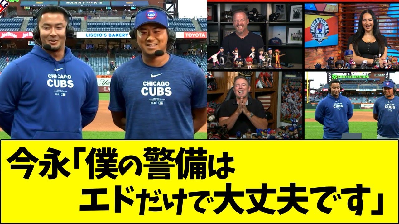 カブスの今長翔太投手31が23日日本 時間24日BMLBネットワークに出演 今期を振り替えるなど様々な質問に答えた メジャー1年目の今期は22日同23日の ナショナルズ戦で7回無失点で15勝目を 上げるなど現時点で29試合に登板し15 勝3敗防御率2.91と素晴らしい成績を 残している番組の中では様々な質問に答え たがその中で来年の東京ドームでの開幕戦 の話として大谷投手や山本投手さらには チームの鈴木選手は日本でも人気が高い ことからどれぐらい警備が必要と尋ねられ た今長は大谷選手山本選手鈴選手は 素晴らしい選手で日本でもスター プレイヤーなので本当に体の頑丈な警備の 方がたくさん必要だと思うんですと前置き をしてけど僕は通訳のエドウィンがこの 体つきをしてるので彼1人で十分ですと 答えた通訳のエドウィン氏も自分のことな ので恥ずかしそうに通訳すると会場は爆笑 となった今なが毎回インタビューで落ちを つけて笑いを取っているメジャールーキ ヤーですがすでにとった笑いの総数は日本 人メジャー歴第1位だと思う横浜のファン 差でも今長先生は率先してハッピースター ダンスを踊ったりして昔からおちゃめさん でした今シーズンに限って言えば大谷の次 に成功した日本人は間違いなく今長だろう ね今長の落がアメリカ人に受けて るってすごいな米時代から笑いの壺はえて たと思うがアメリカ人向けだったのか やたら盛り上がりますねしし通訳の エドウィンさん新人恒例のコスプレにも 巻き込まれていたし仲が良いでしょうね いつも思うがこういうやり取りを今長先生 は一瞬でできるところが本当にすごい