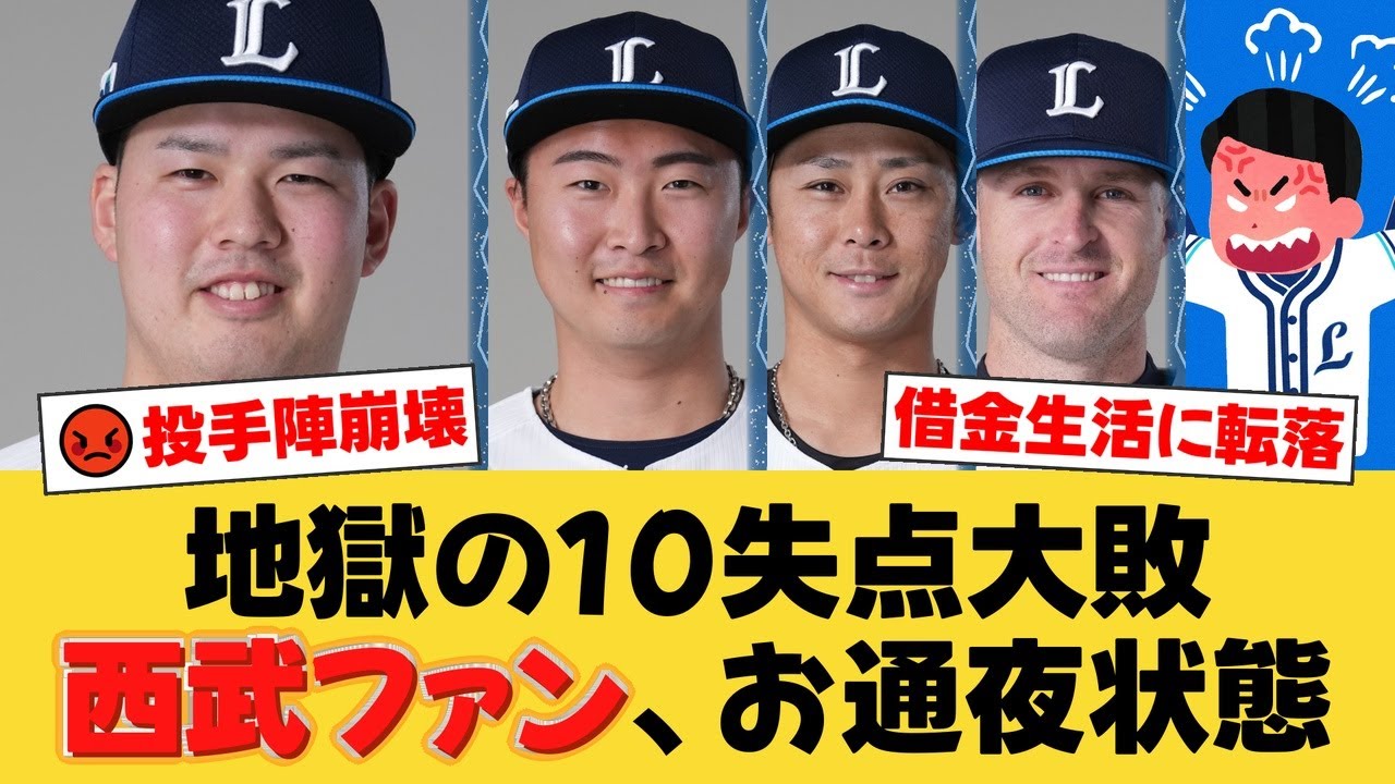 西武は投手陣が崩壊し、1-10で大敗。今季ワーストの18被安打を浴び、79日ぶりの借金生活に転落しました。