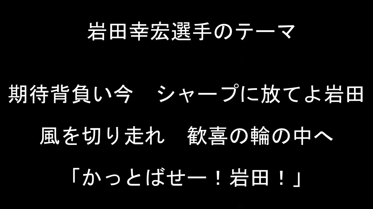 期待背負い今 シャープに放てよ岩田 風を切り走れ 歓喜の輪の中へ