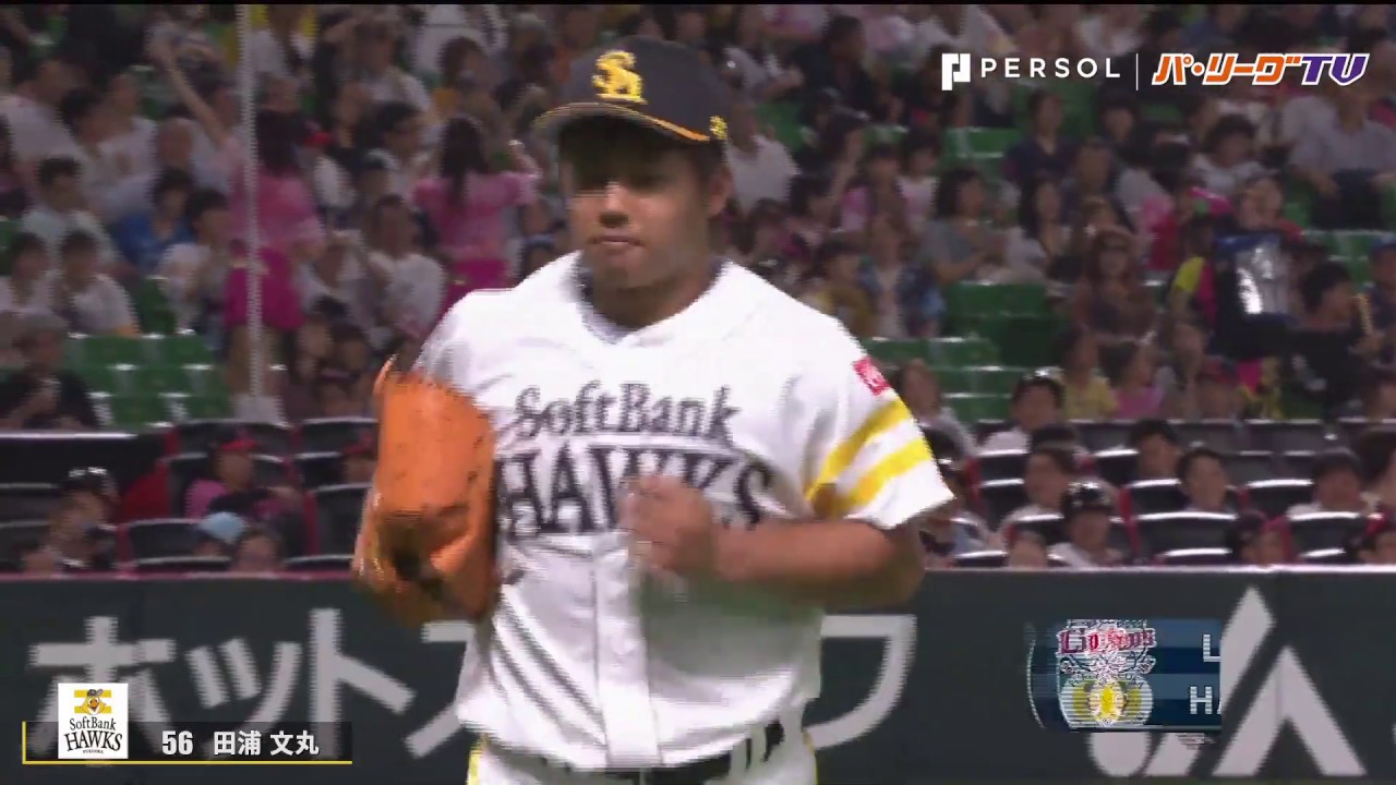 プロ初登板となった福岡ソフトバンク・田浦文丸。思いっきり腕を振って投げるフォームは、帽子が飛んでしまうほど。にしても、、福岡ソフトバンクにまたまた若手が出てくるこの強さ。
