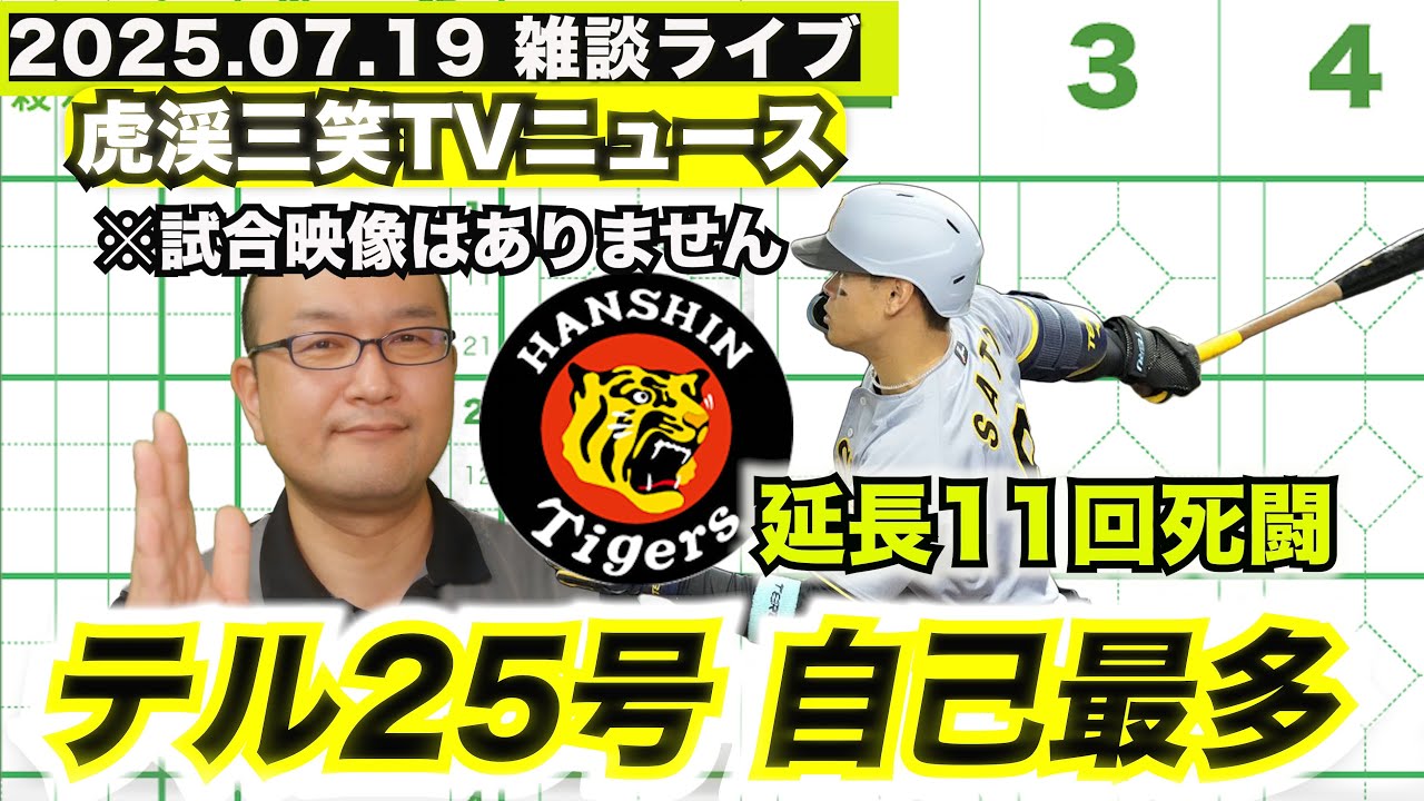 【虎渓三笑TV】ライブ配信 2025.07.19 阪神タイガース vs 読売ジャイアンツ 前半戦最後の天王山は佐藤輝明 自己最多の25号で決着!巨人の自力優勝が消滅しました。