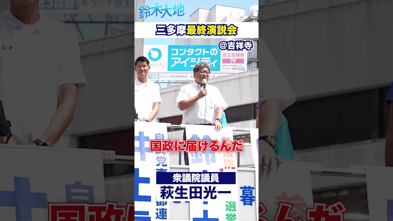 選挙戦最終日・東京都参議院候補の鈴木大地が吉祥寺駅前で行った「三多摩最終街頭演説会」の様子をぜひご覧ください!