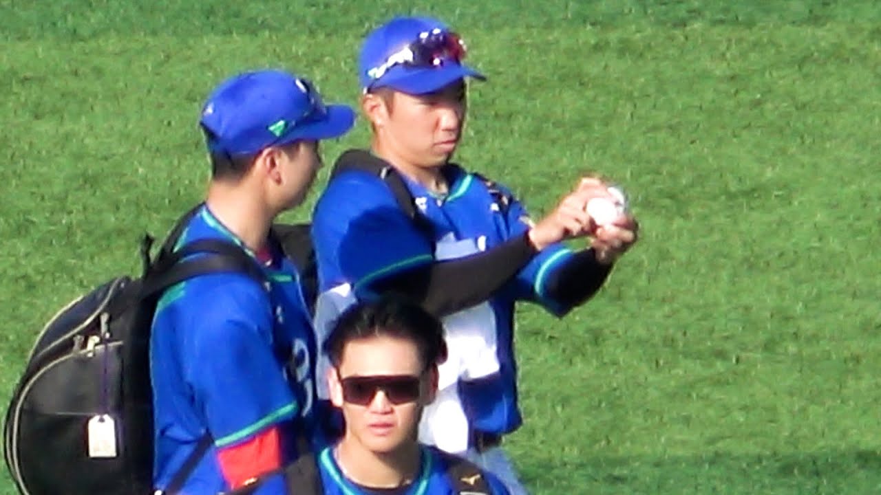 広島・島内颯太郎と阪神・石井大智が握りについて語りながらアップからベンチへ帰るの現地映像です。