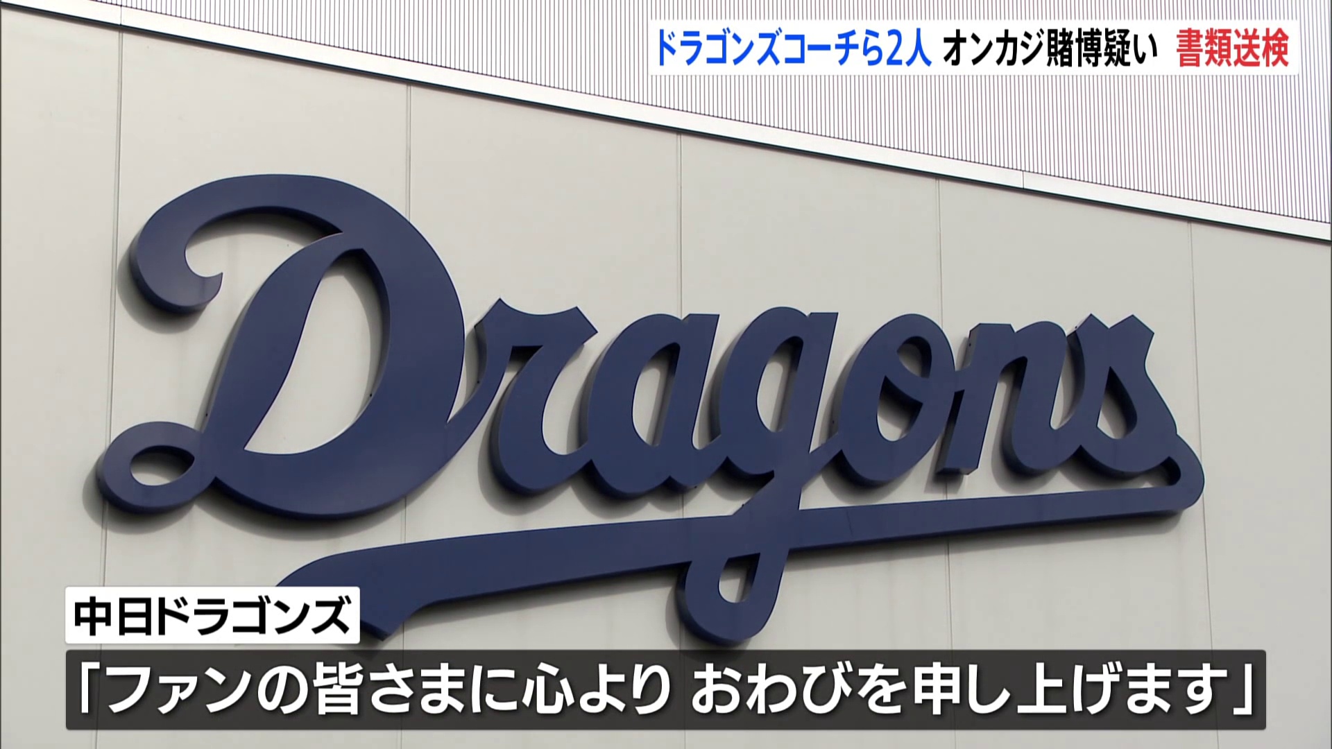 プロ野球・中日ドラゴンズのコーチら関係者2人が、オンラインカジノで賭博をした疑いで書類送検されました。