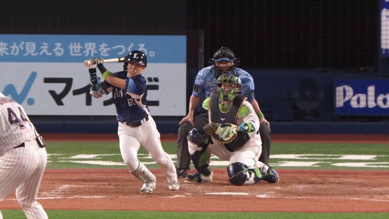 5回表1死二塁、滝澤夏央(西武)がライト前タイムリーヒットを放ち、これでパ・リーグは先発全員安打達成!