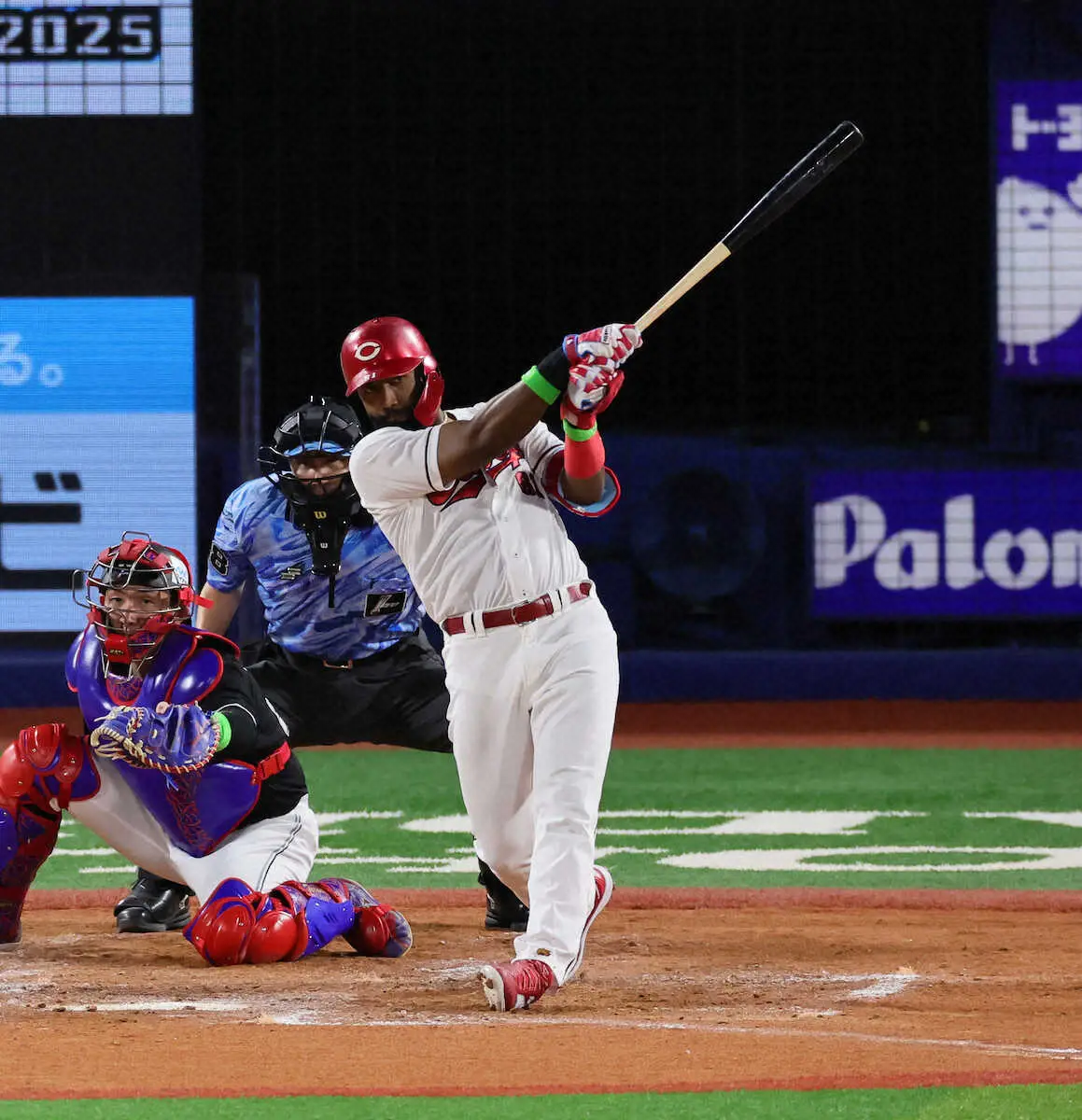 「マイナビオールスターゲーム2025」は24日、横浜スタジアムで第2戦が行われ、全パが10―7で全セを下して2連勝とした。広島のサンドロ・ファビアン外野手(27)が「7番・左翼」で先発出場。2回の第1打席に左前打を放ち、球宴初安打をマークした。球団野手新助っ人では04年ラロッカ以来、21季ぶりの出場となった夢舞台を「楽しかった」と振り返り、あす26日から始まる後半戦での奮起を誓った。