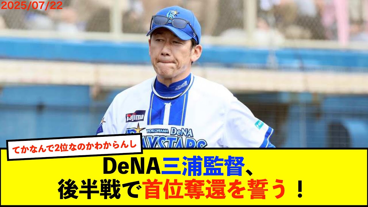 [音楽] DNA三浦監督後半戦で首感を誓う。 DNA三浦監督リーグ前半戦総括2位じゃ ダめです。後半戦に巻き返せるようにまだ 試合数はありますから。スポ日より三浦 監督リーグ前半戦総括2位じゃダめです。 後半戦に巻き返せるように試合数はありますから、後半戦最初に周囲のチームと戦うわけですから、いいスタートを切りたい。またセリーグの順はこちらになります。てかなんで 2位なのかわからんし。 他力き混んの2。 え、2 位だったのか。ほんま団子状態やな。 巨人広島が勝手に落ちていった。 セリーブ内のペナントでは貯金を作れているし、特質点プラスなのはうちと阪神だけやし、妥当な順位ではある。 これでも総得点はリーグにでも広島が 6点取って並ばれたか。 ご視聴ありがとうございました。チャンネル登録、高評価、コメントとよろしくお願いします。 [音楽]