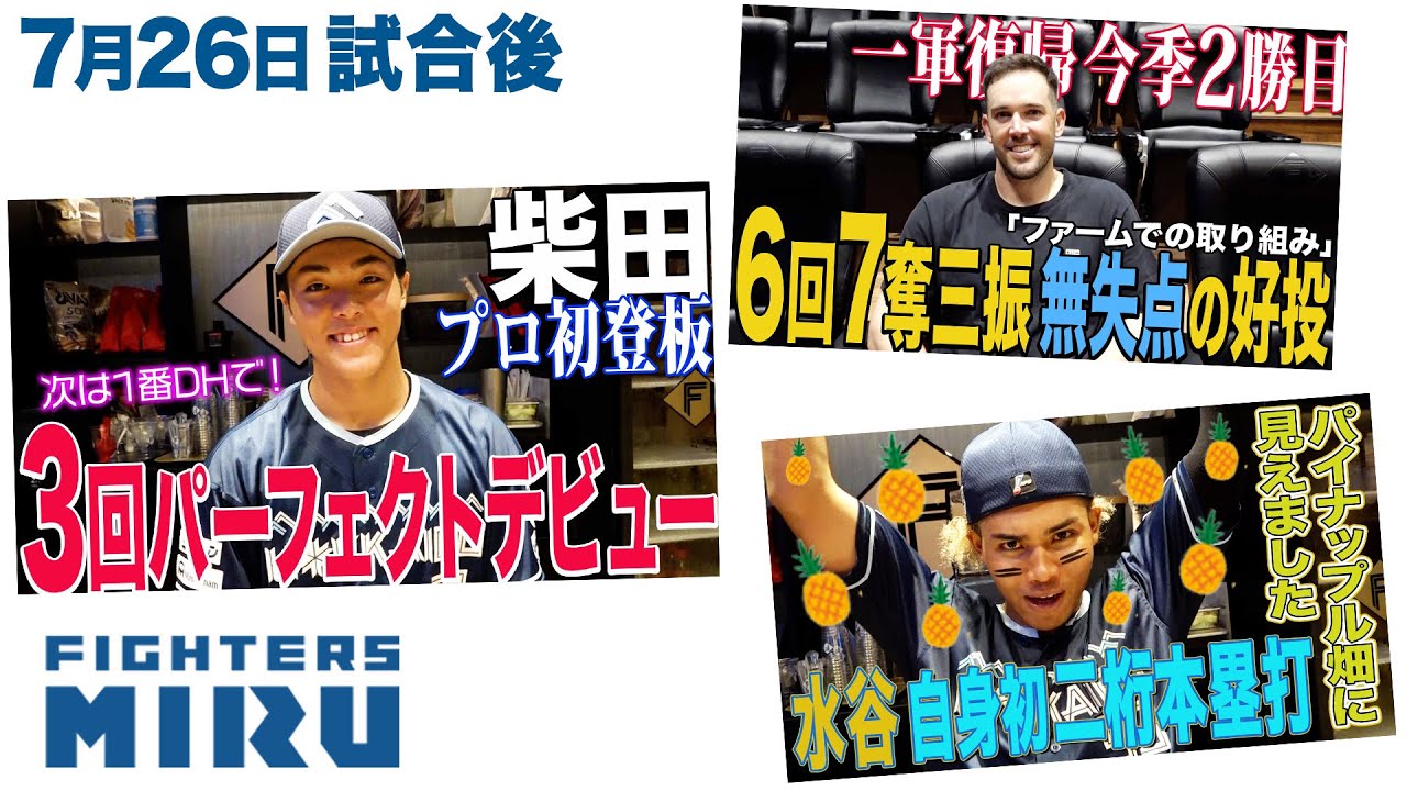 【ファイターズMIRU】柴田&水谷&バーヘイゲンの7/26試合後インタビュー