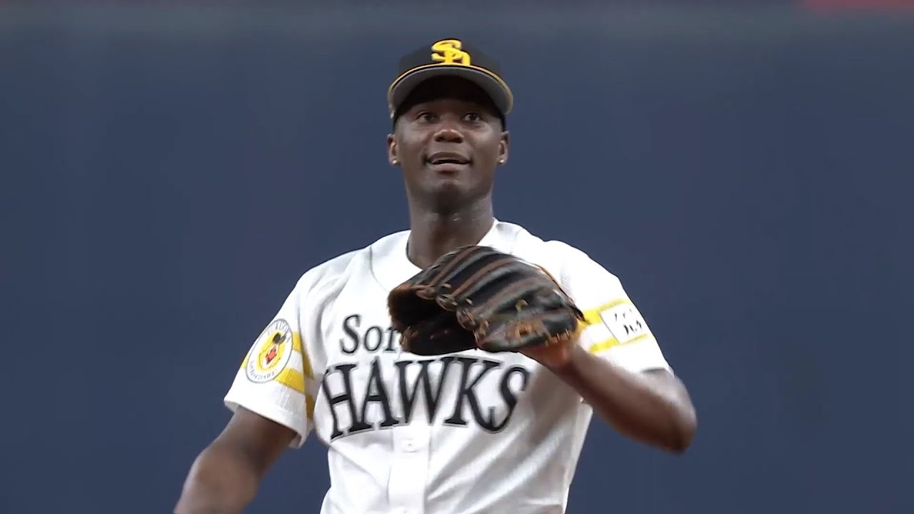 4回表、L.モイネロ(ソフトバンク)がグローブを左手に入れ替えてまさかの右投げを披露!