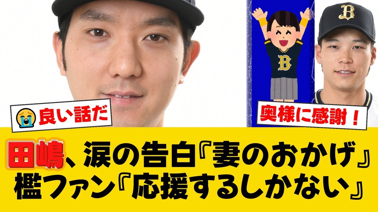 田島涙の告白妻のおかげオリファン応援するしかない [音楽] オリックスタジマ行投手は今期表情が柔らかくなりチームメイトとの交流も増えた。これは結婚による幸福が大きく影響しており以前の高校な姿は変化が見られる。かつて島は人間関係を避けの成績で全てを解決してきたと振り返える。フロイ入り母はコミュニケーションの重要性を感し 1から人間関係を学んできた。 近年は脳み圧思行地や同学年の中が分けい たらとの交流を通じ、徐々に変化を遂げて いる。7月16日の楽天でカ封勝利を上げ 中川との名やかなお立ち台も変化の現れだ 。田島君本当に表情が柔らかくなったわね 。奥様のおかげね。きっとこんなの 泣いちゃよ。本当に素敵な話で戦だ。 分かる。最近の時に出るとこっちまで幸せ になる。 父をやろうてか 10 日をただの調整不足と言って批判してた自分が恥ずかしいわ。 全くだ。事情も知らずに憶測で語るのは良くないという良い教訓になった。 手のひくるしてる奴ら多すぎ。 W でもま、こういう温かい配慮ができるオリックスでよかったよな。いや、プライベートなことだから球団が公表しなかったのは当然だろう。結果的に本人の口から語られてよかったじゃないか。 [音楽] のみさんの存在も大きかったので本当に良い先輩に恵まれたわね。 本当のみさんはコーチとしても人間としても一流だな。昔の投資王告を思い出すよ。 コミュニケーションを1 から勉強したってすごいな。野球だけじゃなくて人間としても成長してる。行ける。絶対行ける。 [音楽] 俺が監督ならもっと早く気づいてサポートしてやったけどな。まあでも本人の努力が 1番だろう。 できながら良い話ですね。 田島投手の人間に知れてなんだか応援したくなりました。でも試合では容赦なくっちますから。 綺麗ごと言ってんじゃねえよ。次は絶対抑えるから覚えとけ。とけ太の同学年コンビートすぎるお立ち台のやり取り公式からの供給朝ます。奥様田島投資を変えてくれて本当にありがとう。 [音楽] こんな良い話を聞かされたらもう FAとか考えられんな。 ずっとオリックスにいてくれよ。 オリックス最高。選手を大事にする級団だ。マジで最高。奥様の力は偉大なのだ。このチャンネルではプロ野球の反応をまとめてます。チャンネル登録よろしくお願いします。なのだ。 [音楽] [音楽] [音楽]