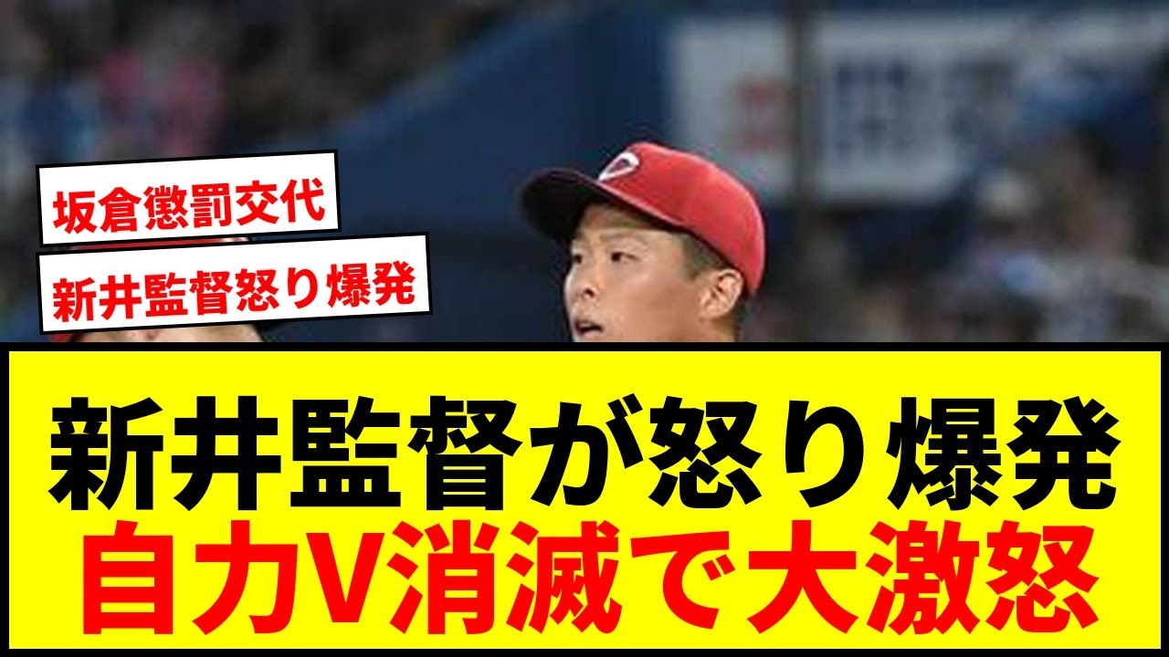 [音楽] 新井監督が起こり爆発力消滅で来撃怒 [音楽] 広島の新井高弘監督はヤクルト戦での配線により G 優勝の可能性が消滅したことに起こるをじませました。先発の玉村投手は 2 回と中失点と配信の投球を見せは猛本人に聞いてと突き離しました。また星野の坂倉選手はタイマな総塁で挑となり監督は [音楽] 1回や2 回ではないと式指摘しました。この配線でチームは借金側も 6に拡大し年場を迎えています。 あれだけ取れなかったチケットも何だったのという柄。 価格はタイマ総塁だけでなく補給や早急もやる気のないプレイが多すぎる。 [音楽] 今のカープの選手たちを見ていると感動や控引かれるものが全くない。 下のこのりが物語っている。チームに覇気が感じられない。 [音楽] 優勝は無理でもCS があると言いたいところだが再開に転落してもおかしくない。正直ここまでまだ自力優勝は残っていたんだという驚き。 [音楽] この3 年間という名の元で緊張感も競争力もないチームにした。今更の起こりというより厳しさがこれまでかけていたのは監督。選手の誠意ではなくこんなチームにしたフロント監督の責任。 [音楽] 選手を攻めない姿勢は選手たちも荒れてくるとそれに甘える方向になる。 3年間ナーでやってきたが出てきた。 スタ面を固定せず前日活躍した選手も日替代替わりでコロコロいに家族野を回ってきただ [音楽]