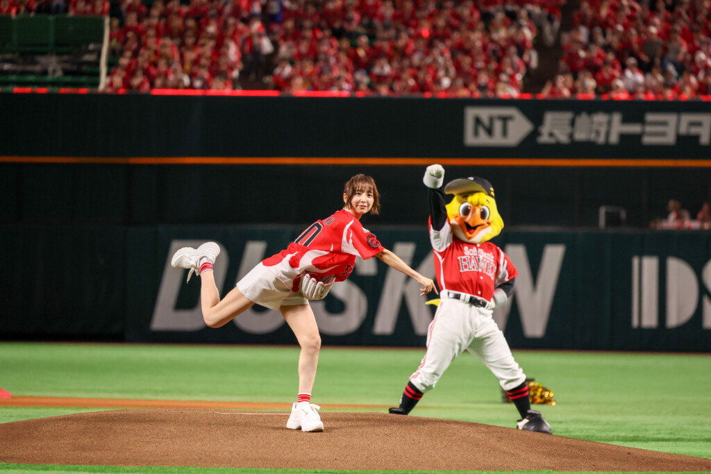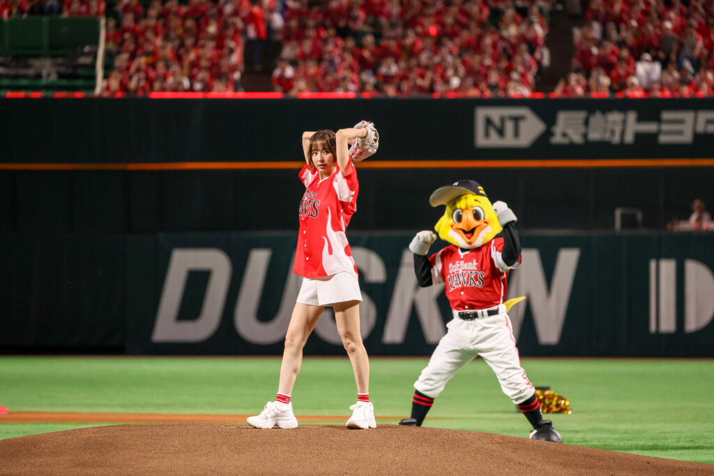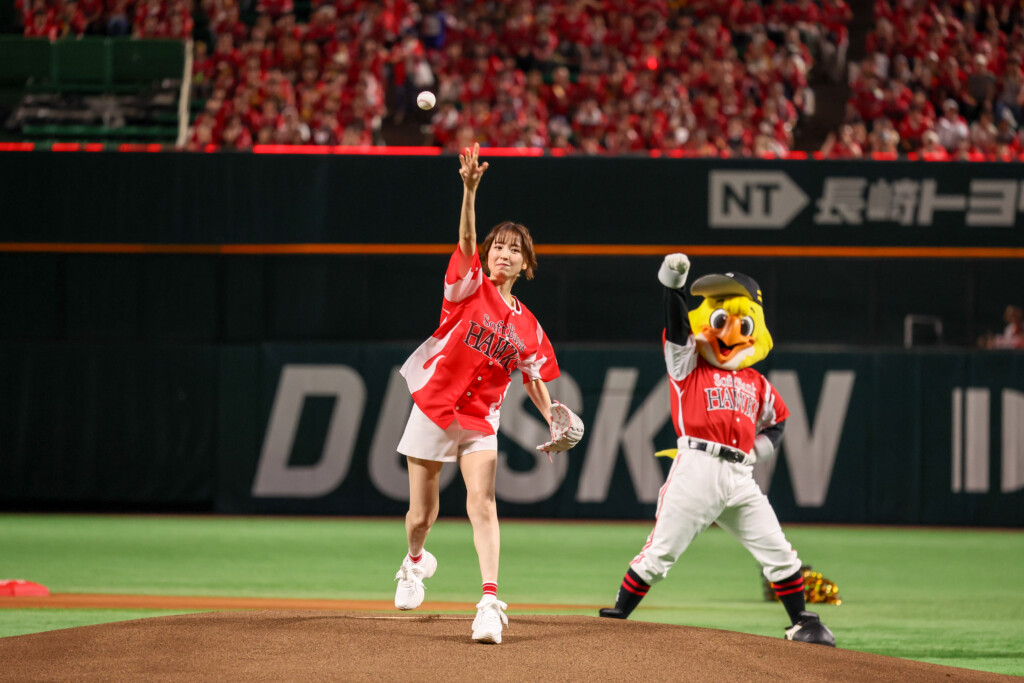 初日となる26日のセレモニアルピッチを担当したのは、地元福岡県出身の篠田麻里子。