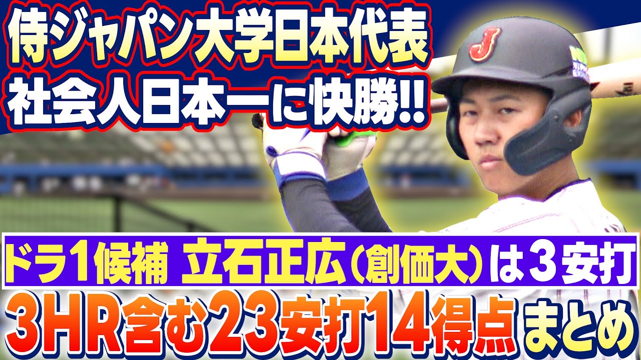 【全安打・全得点・投手全アウト見せます!】大学日本代表が去年の都市対抗優勝チームに23安打14得点で快勝!