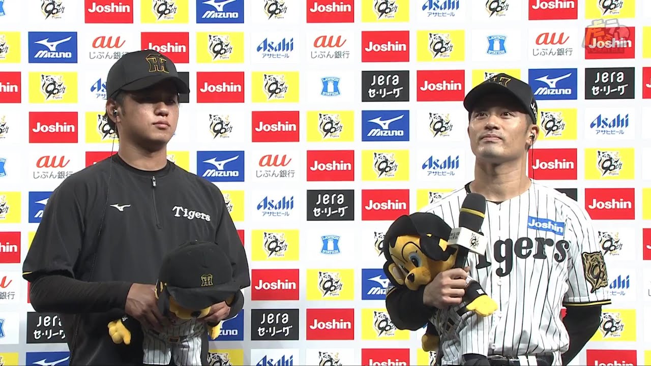 お立ち代ということになります。高橋坂本のヒーインタビューです。関 ヒーローインタビューです。今日のヒーローは今シーズン初勝利高橋投手。そして先制タイムリーを含む三田打田翔坂本郎選手です。まずは高橋に伺いましょう。 ファンの皆さんがこのお立ち合いにまた 戻ってくることを待ち望んでおりました。 まず今のお気持ちから聞かせてください。 え、ま、初め、あ、今年初めて勝てて 良かったです。 中11日相手の今日は先発マウント 今シーズン2試合目でした。 今日のピッチングご自身で振り返っていただいていいですか? え、ま、ま、あんまりだったんですけど、え、ま、聖書さんにうまく引っ張ってもらって、あとは、ま、店員たくさん取ってもらったんで、え、ま、投げやすかったです。はい。 試合中には坂本選手とはどんな会話が 1番多かったですか? え、ま、次こうや、こうしてこうみたいな、ま、そんな感じですかね。はい。 はい。非常に素晴らしいコンビネーションだったと思いますけれども、ハルト投手術を経てまた手にした今シーズン初めての勝利。 今年の初勝利の味はどんな味ですか? そうですね、ま、でも本当にマウンド立つまでいろんな人に、え、協力してもらって、またマウンド立てることが立つことできたんで、え、ま、そういった人たちにとまとファンの人たちに、え、報告、報告っていうか、ま、報告できればいいなと思います。 初回のあの満塁のピンチを耐えたあの粘り強さというのも非常に見事でしたけれども、これからまたどんなピッチングを高橋見せてくれますか? え、ま、今日より、ま、今日よりはしっかり投げれるように頑張ります。 それでは最後にファンの皆さんに一言次回に向けてのまた意気込みお願いします。 え、次もしっかり、あ、次はしっかり投げれるように、え、頑張ります。え、つもたくさん応援ありがとうございます。 まずは今シーズン初勝利の高橋投手に伺いました。ありがとうございました。続きまして先制タイムリーを含む三田打田賞坂本手です。まずはバッティングから伺いましょう。 チャンスの場面で2アウト2 塁。あの打席ごどのように振り返りますか? いや、もうあのはい。打てると思った球を積極的に行こうと思って大好き立ってました。はい。 石田優太郎投手とは初対決になったと思いますけれども、その辺りの難しさはなかったですか? え、ま、逆に知らないんでもうはい。あの、打てると思ったら行くしかないっていうあんまり考えずはい。 出ると思ったが行きました。はい。 見事なタイムリーでしたけれども、その後もヒットが続きまして、今シーズン初めてのモ打賞。これに関してはいかがでしょう? え、ま、年に 1 回あるぐらいのやつなんではい。今日来ていただいた人にはあのいいもの見せれたなと思います。 甲子 園の大田打田賞は本当に久しぶりですけども、まだシーズン長いですから、え、これからも 2回目、3 回目楽しみにしていますんで、それから高橋投手のピッチング実際にこうリードされていて、 1 番大切にしたことは今日はどんなことでした? え、ま、先にあの点がいっぱい入ったのではい、あの、 1 人ずつどんどん先に勝負していこうっていうことで、え、今喋ってても、え、自信なさげに喋ってます すんげえ玉をずっとはい、投げてたと思い ます。 それから高橋ハルト投手も含めて今日また リリーフ陣も続きましたけれどもチーム 防御率がシーズン通して1点台この辺り キャッチャーとしていかがですか? え、あんまり言われるとプレッシャーに なるので言わないでください。 わかりました。じゃあこれからはちょっと 静かに、え、見守っておきたいと思います けれども。そしてタイガース今日勝ちまし てオールスター明けも2連勝。そして 勝ち越しいわゆる貯金の数が今シーズン 最多20になりました。 これからまた1戦1戦本さんどんな気持ち で戦いますか?え、本当に目の前1つ1つ 、え、勝ていくことしかできないのではい 。みんなで、え、ま、 1日明日飽きますけど、もう 1 回甲子園で集られるので、はい、全員で、え、 1 つの勝ちに向かってはい、戦っていきたいと思います。 ありがとうございます。それでは最後にもう一言、え、楽の広島線に向けて坂本さんチームとしてこういう戦いをしていきますと意気込みお願いします。 はい。え、もう 、え、一気に行こうと思ってるので、え、 ファンの皆さん一緒に行きましょう。 力強い予言ありがとうございました。今日 のヒーローは今シーズン初勝利高橋投手、 そして3田ボ打賞坂本郎選手でした放送席 どうぞ。 高橋と坂本郎両選手の個性前回のヒーロー インタビューでした。 では、勝利監督インタビュー、藤川監督のインタビューです。藤川二監督に伺います。 7対1 での勝利、今日の試合はどう見ていましたか? ま、高橋はね、あの、 1人組目ですか、え、30 球ほど投げて、ま、人汗書いてというところでは、え、その後すっとこう自分の