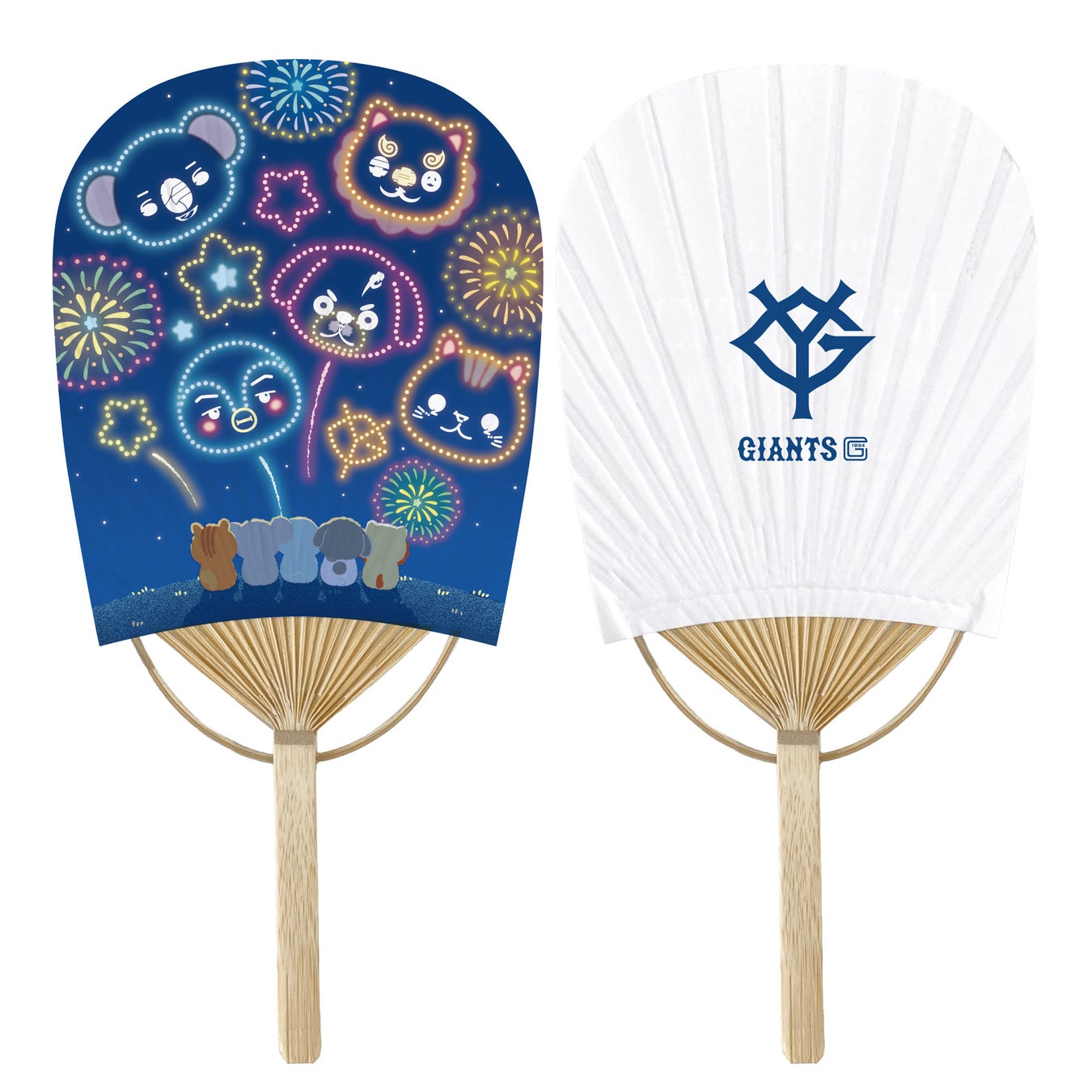 定番の応援アイテムや、夏祭りにあわせた新商品を販売します。人気シリーズ「ジャイアンツパペット」のキャラクターと花火を描きおろしたイラストグッズです。