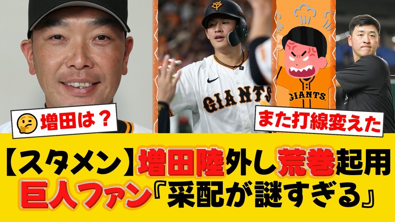 プロ野球、広島東洋カープ対読売ジャイアンツの試合に先立ち、巨人のスターティングメンバーが発表されました。27日の試合では、リチャード選手が7番サード、荒巻悠選手が8番ファーストで起用されます。先発は赤星優志投手、捕手は岸田行倫選手が務めます。前日の試合で4番まで務めた増田陸選手がスタメンを外れたことや、5番に岸田選手を起用するなどの阿部慎之助監督の采配に対し、ファンからは「謎すぎる」「また打線を変えるのか」といった疑問や賛否両論の声が上がっています。この動画では、スタメン情報とともに、ファンの様々な反応をまとめてお届けします。