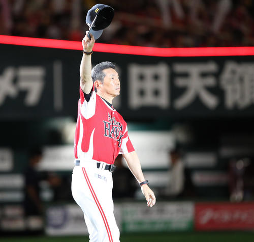 ソフトバンク対オリックス オリックスに連勝しファンに手を振る小久保監督(撮影・梅根麻紀)