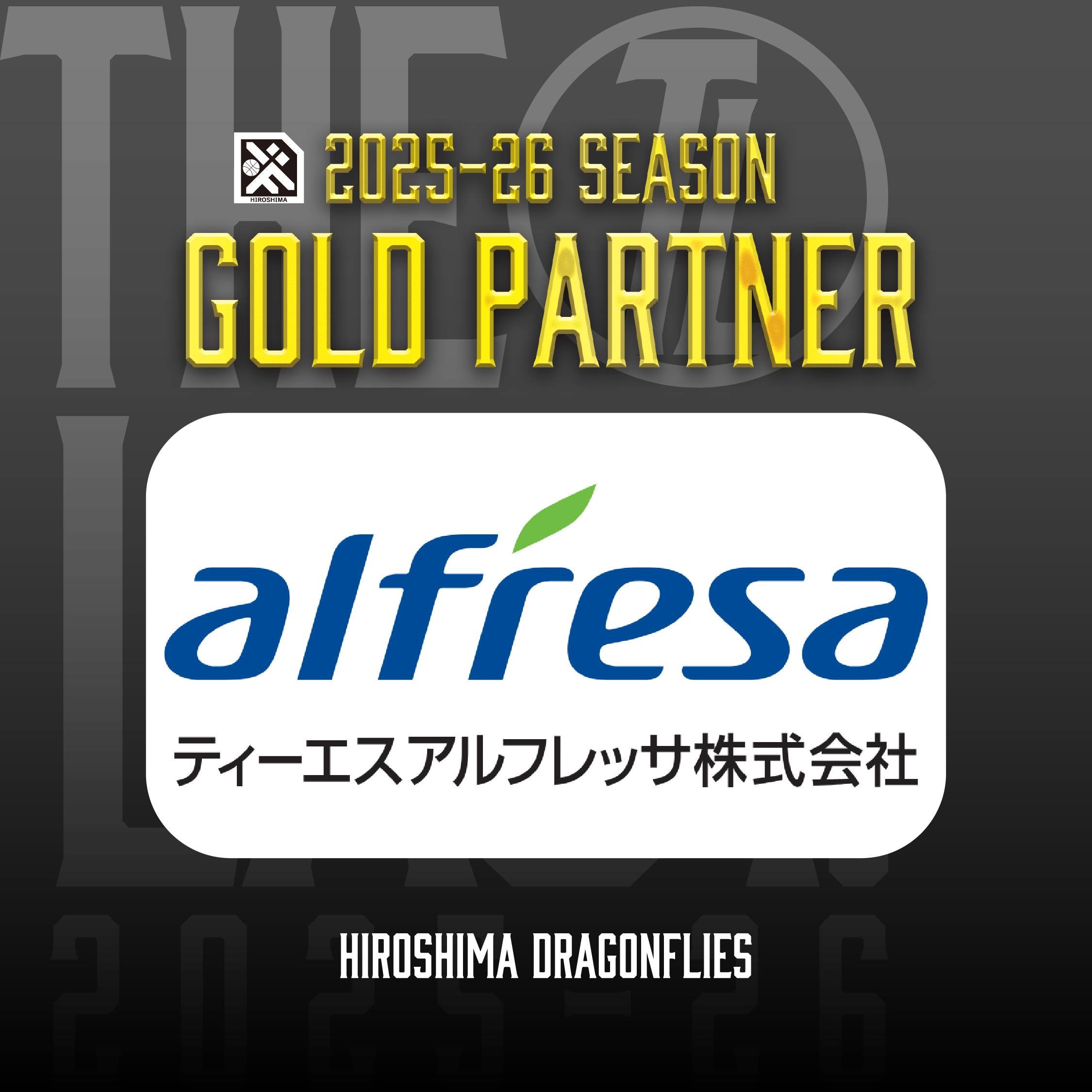 広島ドラゴンフライズのりそなグループ B.LEAGUE 2025-26シーズンのゴールドパートナーとして「ティーエスアルフレッサ株式会社」様が決定いたしましたので、お知らせいたします。