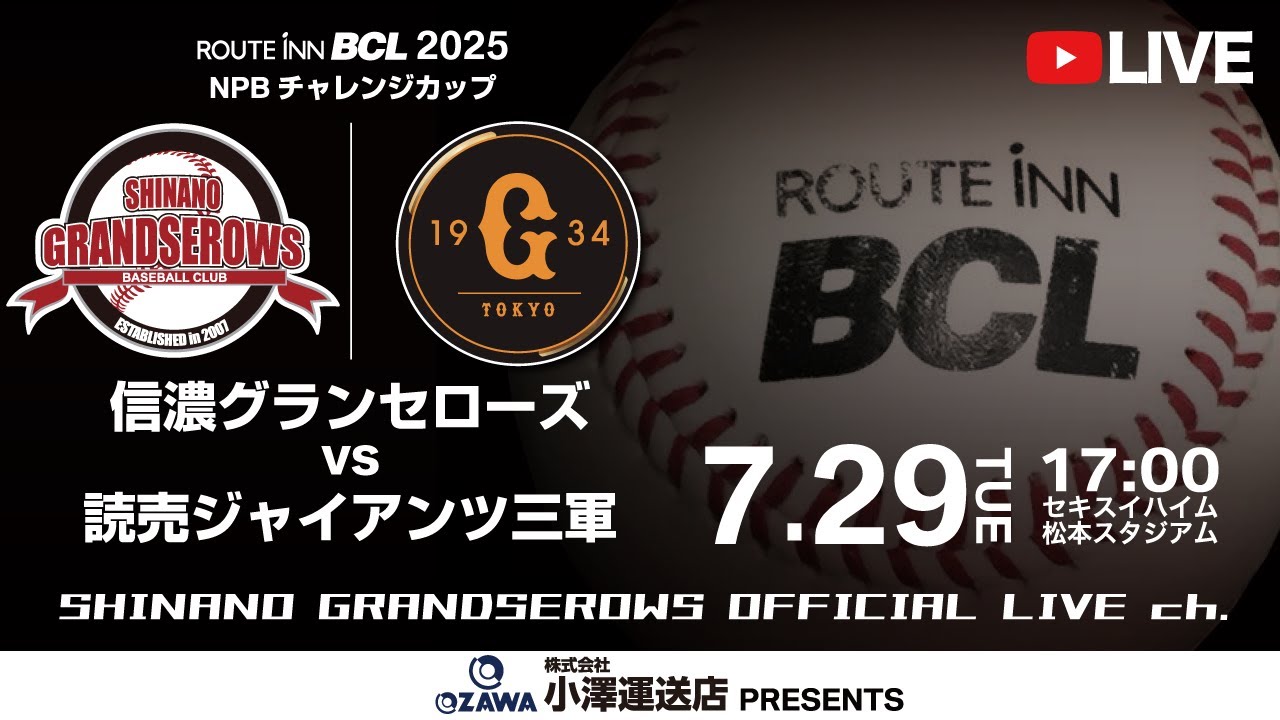 【 LIVE 7.29 】信濃グランセローズ vs 読売ジャイアンツ三軍 | 17:00PB | 第1回戦 | ルートインBCリーグ2025 NPBチャレンジカップ