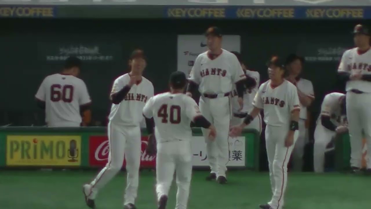 レフトで好守備をした中山礼都 ベンチで松本コーチに褒められる【読売ジャイアンツ対 横浜DeNAベイスターズ2025年6月27日】 Yomiuri Giants中山礼都読売ジャイアンツ NPBHUB.COM | The Fanbase of Nippon Baseball & Nippon Professional Baseball