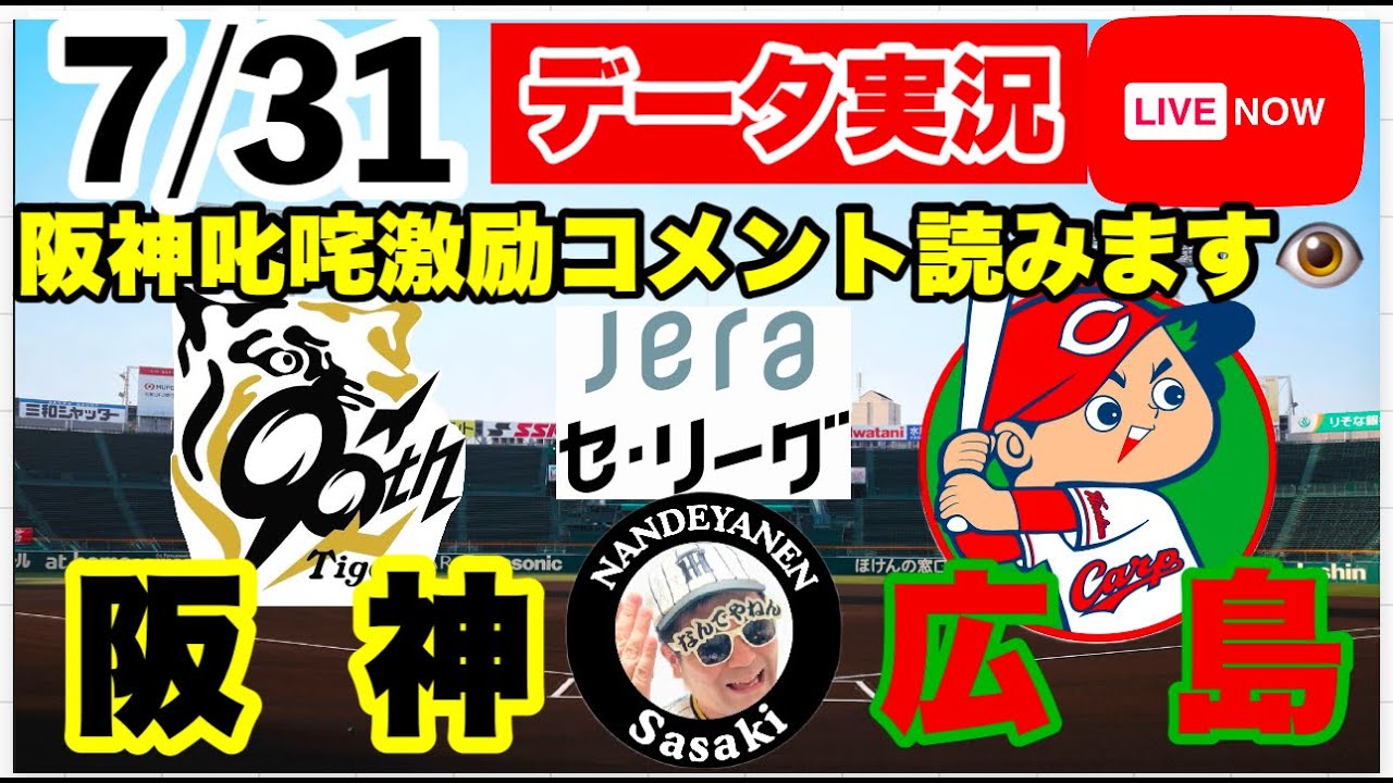 【阪神公式戦ライブ】7月31日 阪神vs広島 データ実況ライブ あなたの阪神応援を11倍楽しくします!#初見大歓迎 #阪神タイガース #阪神 #広島東洋カープ 25/7/31