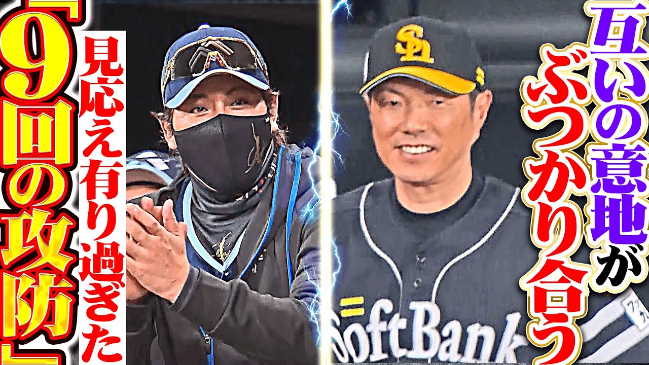 2点差で迎えた最終回。北海道日本ハムは先頭打者がヒットで出塁するも、続く打者が2者連続三振。2死と追い込まれたが、レイエスが四球で出塁し1,2塁とすると、ここで郡司裕也が右中間へのタイムリーヒットを放ち1点差に詰め寄る!! 1,3塁と1打で追いつく場面も、福岡ソフトバンク・杉山一樹が渾身のストレートで外野フライに打ち取りセーブ!! 首位攻防戦にふさわしい激戦となった!!