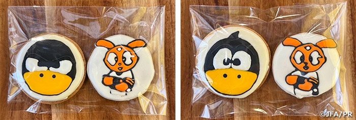 コラボグルメは、ジャイアンツの公式マスコット「ジャビット」と日本代表の公式マスコット「カラッペ&カララ」をデザインしたアイシングクッキーとコーヒーがセットになったもので、「blue-ing!」のオリジナルメニューです。また、blue-ing!ではコラボグルメのほか、SAMURAI BLUE(日本代表)とジャイアンツのロゴが入ったタオルやキーホルダーなどのコラボグッズも販売中です。