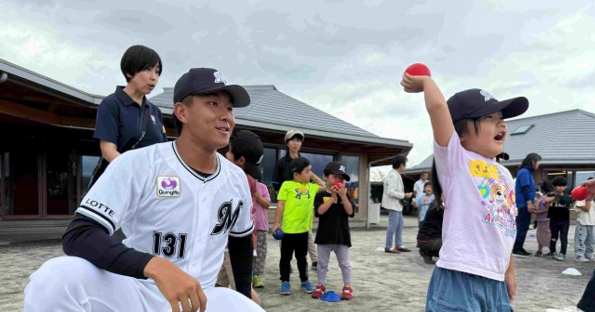 千葉ロッテ、ファーム本拠地移転先・君津市と「フレンドシップシティ協定」締結(写真=今年6月に君津市内の保育園を訪問した時の様子)