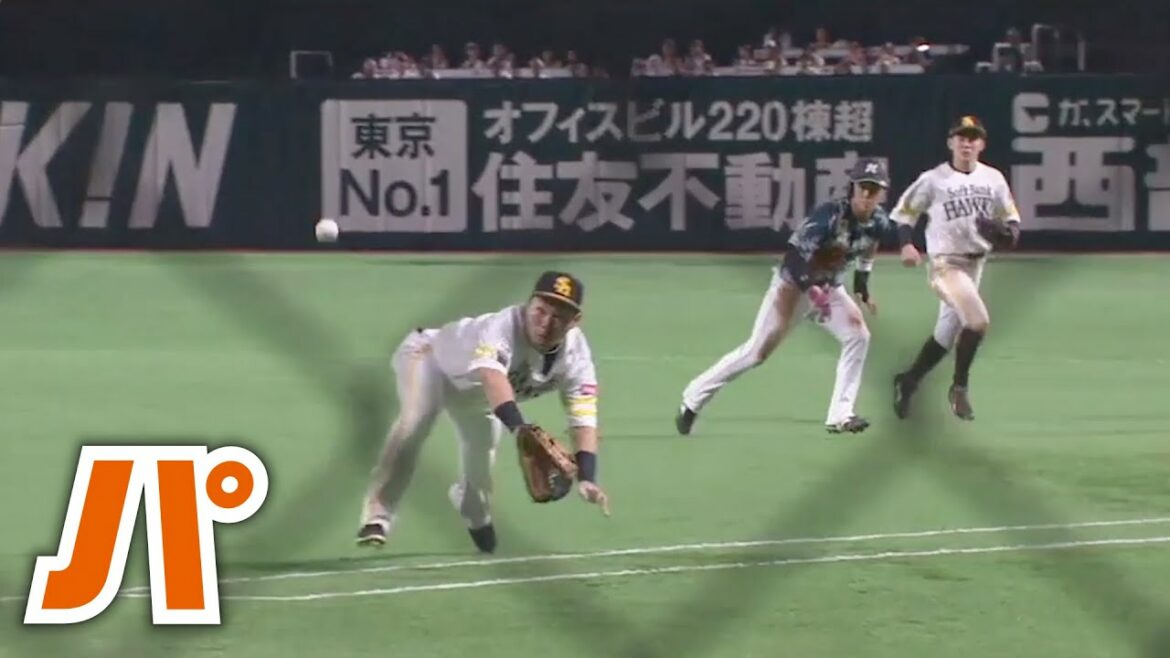 【名場面プレイバック】2018年8月28日 福岡ソフトバンクと千葉ロッテによるリーグ公式戦。7回走者一塁の場面、小飛球に決死のダイビングで飛びついたのは福岡ソフトバンクの中村晃。地面を恐れぬ好捕でチームをもり立てた。
