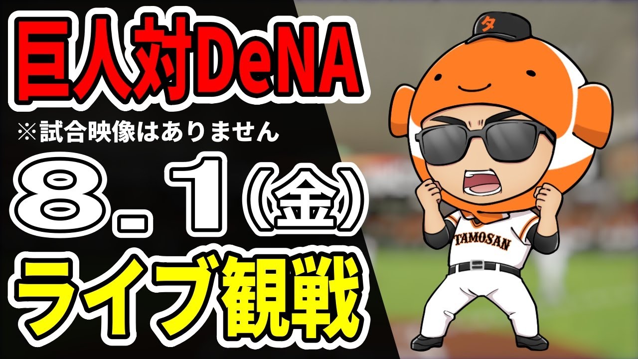 【巨人ライブ】8/1 巨人 対 横浜DeNAベイスターズをみんなで応援するライブ!巨人戦を生配信中!!#読売ジャイアンツ
