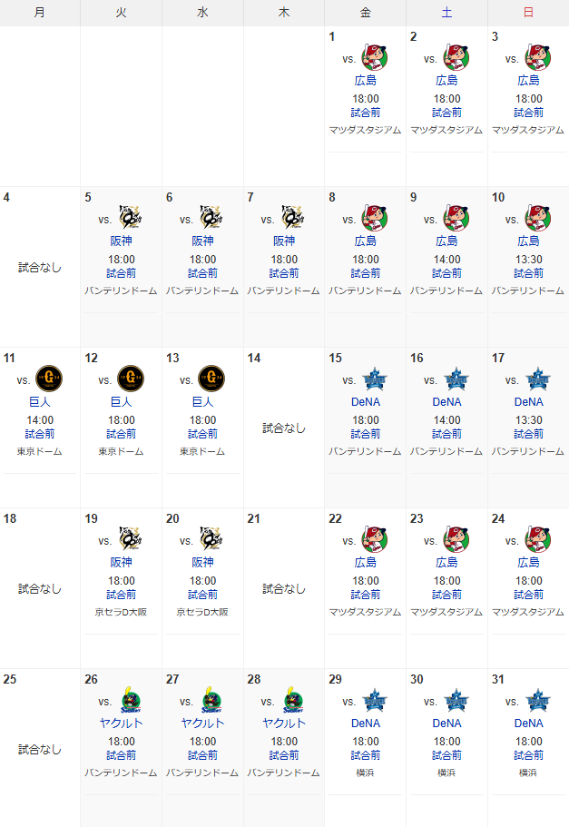 ■2025.07.31 中日ドラゴンズ試合日程【8月】
