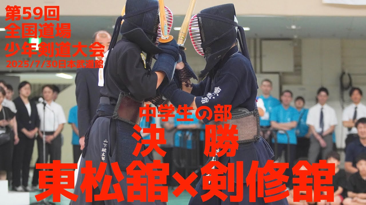 決勝・中学生の部【東松舘・東京×剣修舘・静岡】1松村×山下・2石倉×大鹿・3松本×大鹿【第59回全国道場少年剣道大会】2025年7月29日・30日日本武道館【フロア撮影版】
