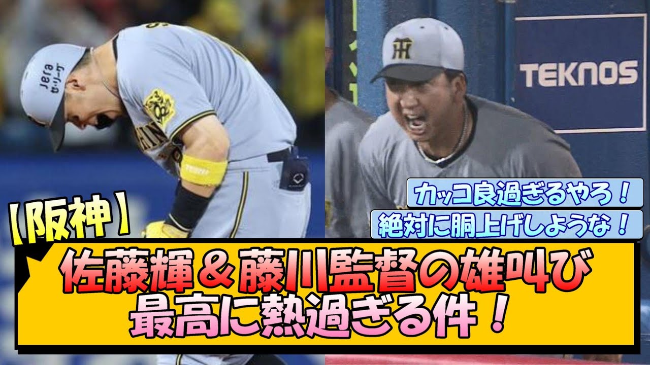 阪神佐藤テルアンド藤川監督のおたけび最高に暑すぎる剣 珍しく吠えて喜ぶ事とそれに答える佐藤テるかっこよすぎやろ テルの決勝タイムリーに吠える監督久々に感情爆発させてるとこ見た気がするわ 映像見れてなかったけどこれ暑いなも砂糖もかっこよすぎるやろて 監督まで含めてチームが 1つになっててええ 監督が元々抑えだったからこそ佐藤の一に岩崎がどれだけ救われるか分かるんやろな。ここで感情爆発させるのは岩崎の気持ちが分かるから自然に出たように思うわ。 監督も一緒に戦ってる感じでこういうのなんかええな。 読み売り戦でも1 回監督が吠えてるのあったけどこういうの定期的に見たいで。 なんか神宮でドんでんがベンチ飛び出して喜んでたの思い出したわ。やっぱ監督も勝負の 8月で気合入っとるんやろな。 この暑い監督を絶対に同上げせなあかんやろ。 甲子園で登場局流して同上げする姿がもう今から目に浮かぶで。 この夏もっと暑く盛り上げて絶対に優勝しようや。 これからも何の面白いすれを取り上げて いくのでコメント、チャンネル登録、高 評価よろしくお願いします。