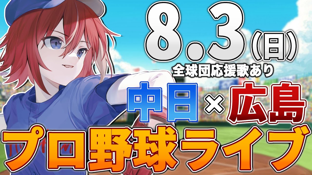 【プロ野球ライブ】広島東洋カープvs中日ドラゴンズのプロ野球観戦ライブ8/3(日)広島ファン、中日ファン歓迎!!!【プロ野球速報】【プロ野球一球速報】中日ドラゴンズ 中日ライブ 中日中継