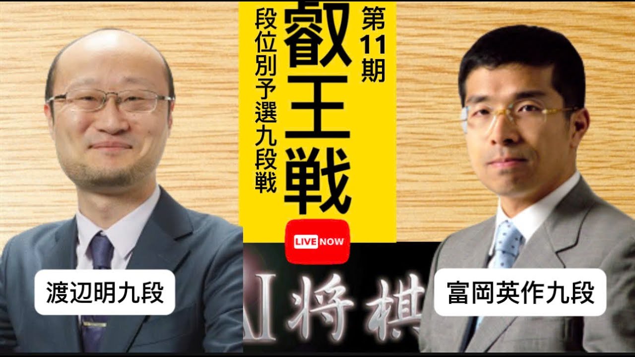 第11期叡王戦段位別予選九段戦から、渡辺明九段-富岡英作九段戦を中継する。対局は8月1日(金)に東京・将棋会館で行われる。対局開始は10時。持ち時間は各1時間(チェスクロック使用)。切れたら1手60秒の秒読み。先後は振り駒で決定する。本戦進出にはあと4勝。本局の勝者は次戦で深浦康市九段と対局する。
